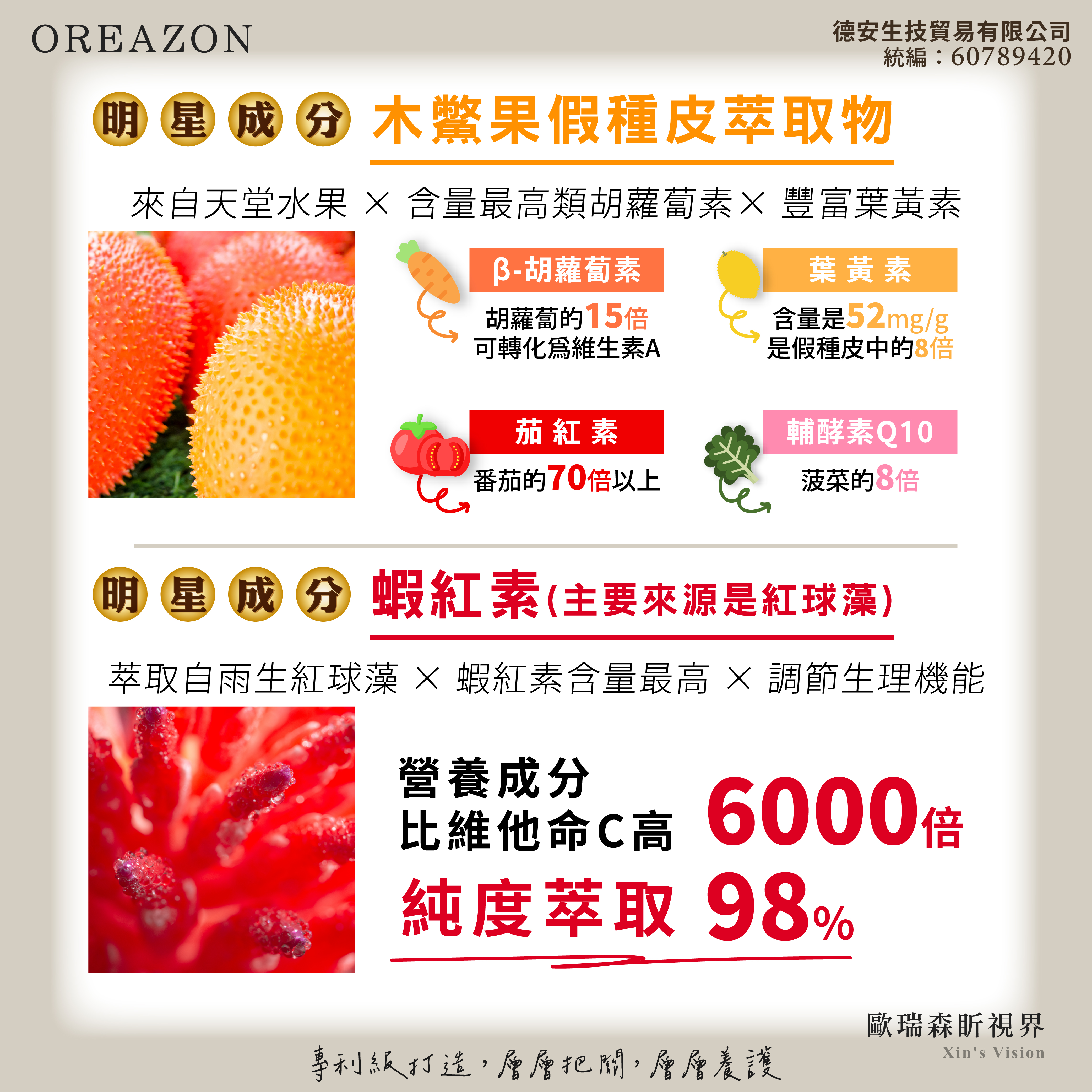 盺視界結合木鱉果與蝦紅素等五大配方,具抗藍光專利。護眼即護腦,全方位守護晶亮!